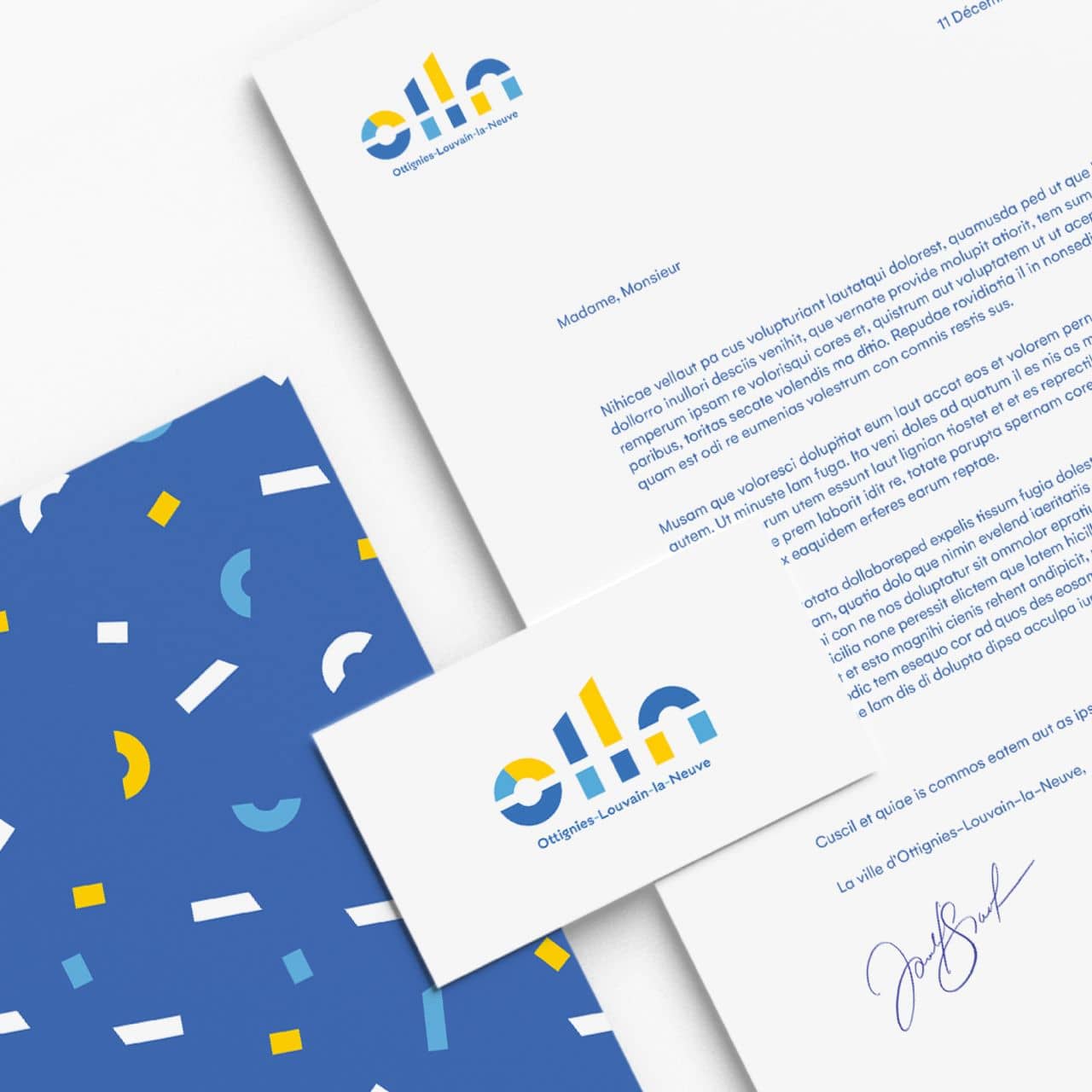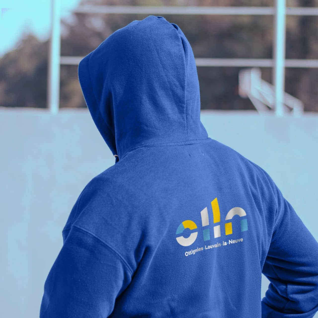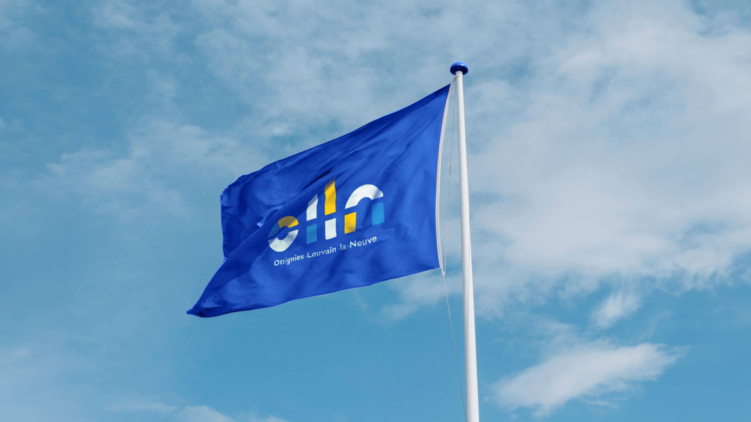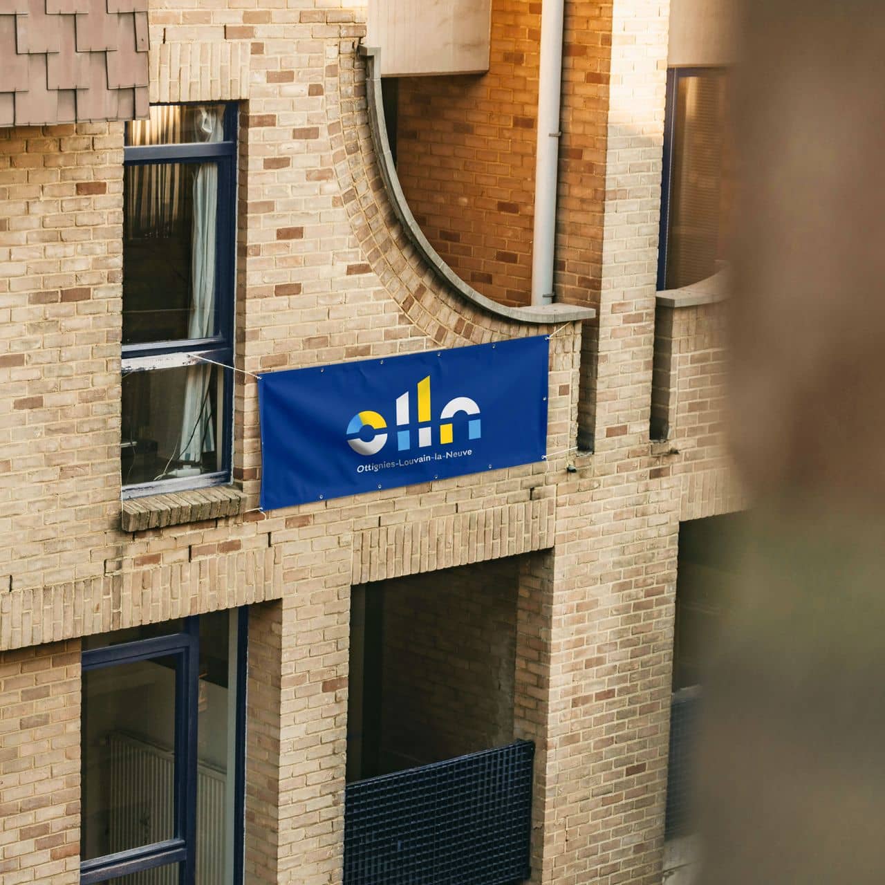 C'est aussi notre "maison" pour laquelle on est fier de jouer à domicile. Comme pour redéfinir son identité graphique dont seules les couleurs jaune et bleu n'étaient pas négociables, tradition oblige. Son logo se dessine à partir de ses initiales. Sa typo, scindée en son centre réinterprète le trait d'union. Avec à sa base, Ottignies, les fondations et, au sommet, Louvain-la-Neuve dont les "L" biseautés ne sont pas sans rappeler la pente du toit d'un de ses bâtiments les plus emblématiques - le Musée L.