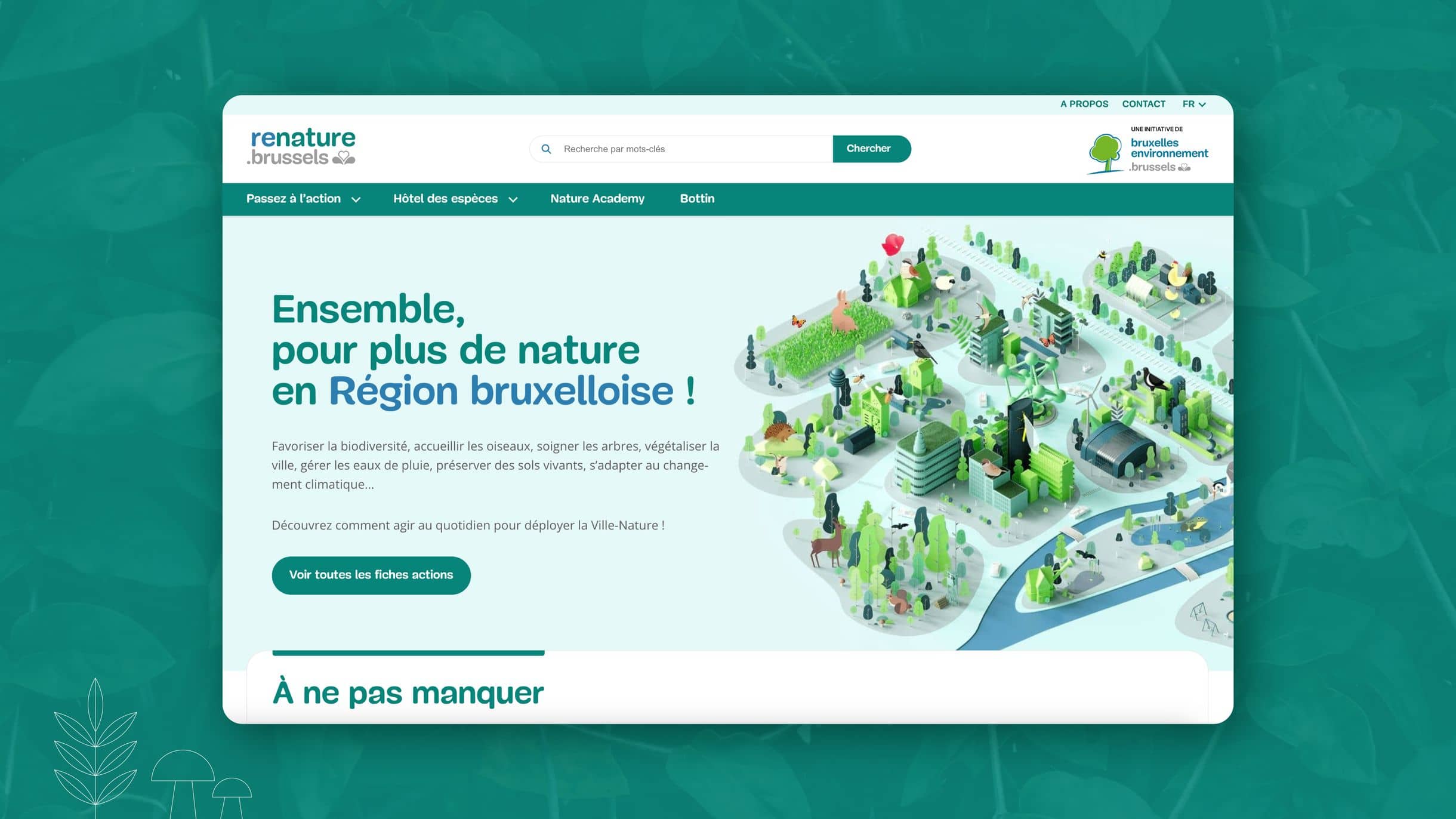 En plus de le souhaiter attrayant au moyen d'un design frais et ludique, renature.brussels est aussi un modèle en matière de référencement, de sobriété numérique et d'accessibilité. Comme quoi, il est aussi possible de "passer à l'action" en matière numérique.